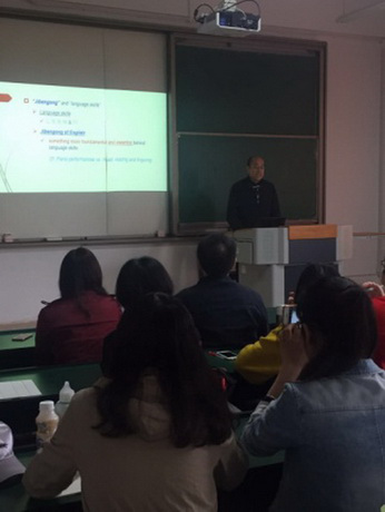 4月21日上午,温宾利教授和冯光武教授在呈贡校区为外国语学院师生做了学术讲座。外国语学院院长徐志英教授主持讲座,副院长王晋军教授、英语系副系主任扬汨老师以及邹红、谢婷、张丽花等老师参加了讲座。