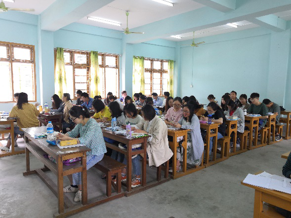 下午,同学们正式步入课堂,以崭新的精神面貌,开启了新的学习生活,曼德勒外国语大学的老师耐心详细地讲解知识,同学们也专心聆听老师讲课,在课堂上积极地与老师互动,形成了十分优良的学习氛围。
