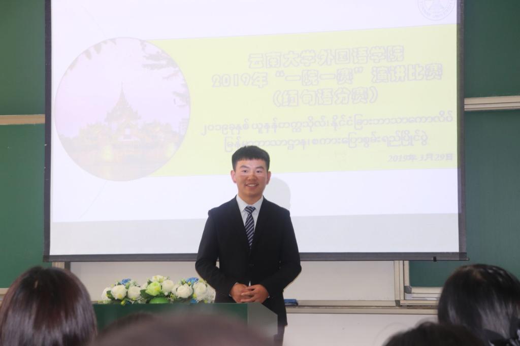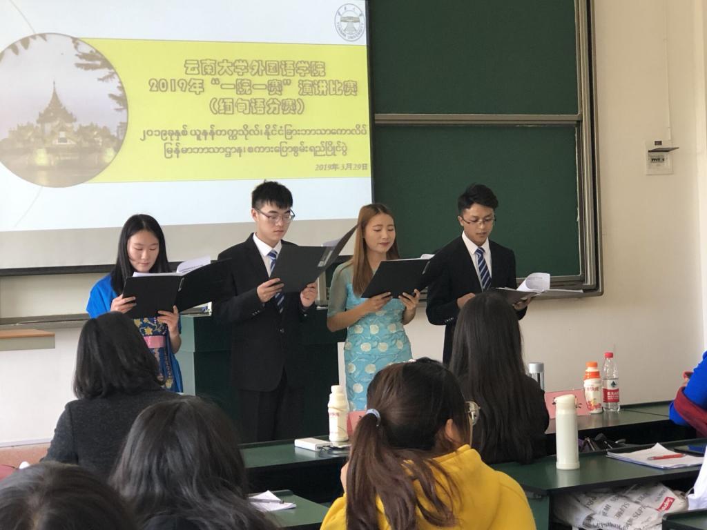 2019年3月29日,ABTY.COM缅甸语系在中邦楼101教室举行“一院一赛”演讲比赛缅甸语分赛。缅甸语系外专杜梭莫莫老师、外教杜早博隆老师、外国语学院李堂英老师、庞俊彩老师、高辉老师担任本次比赛的评委。