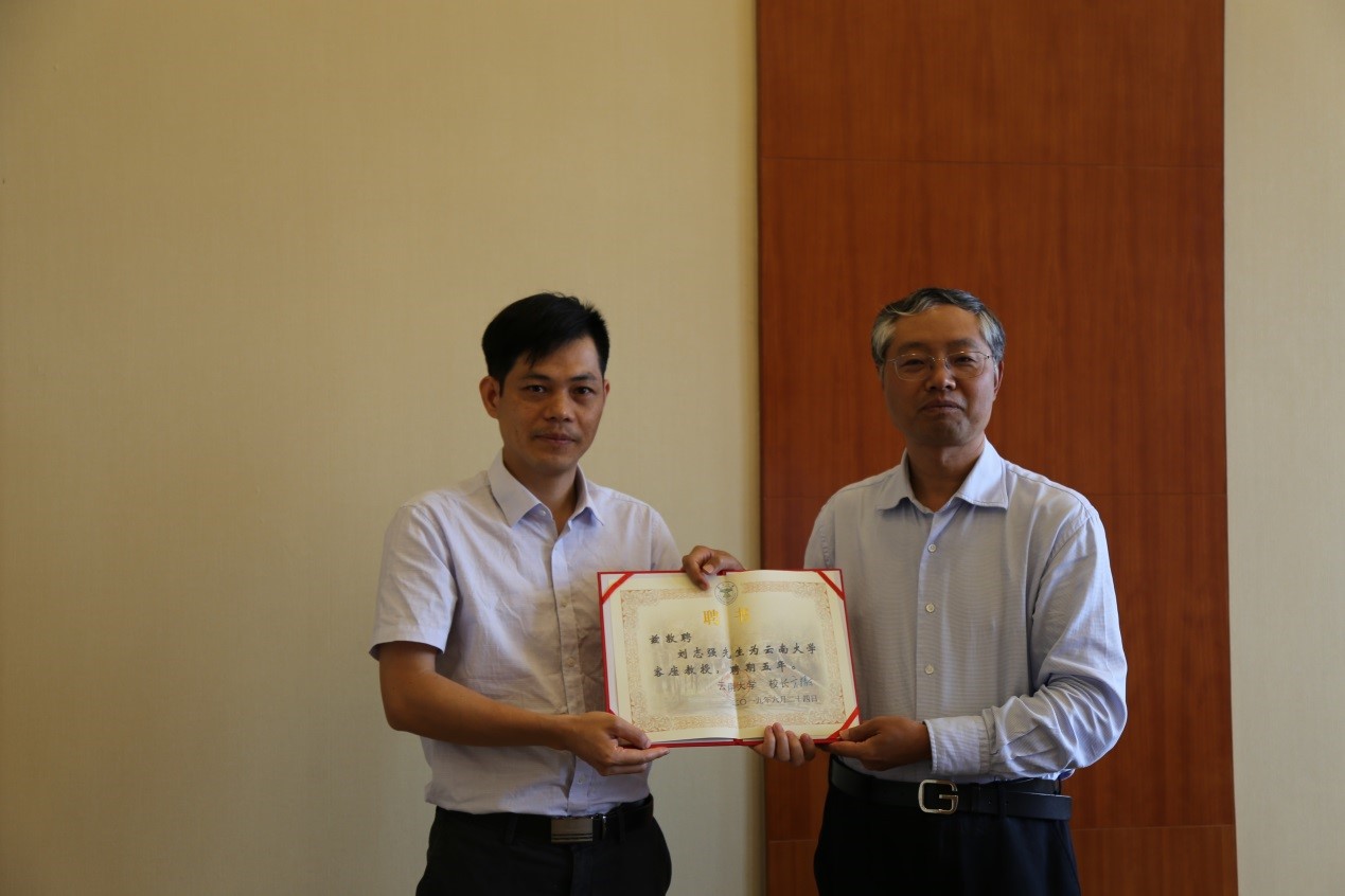 为与刘志强教授在东南亚国家国情研究特别是越南历史、文学领域研究的长期合作,云南大学校党委书记林文勋教授隆重为刘志强博士颁发了客座教授聘书。