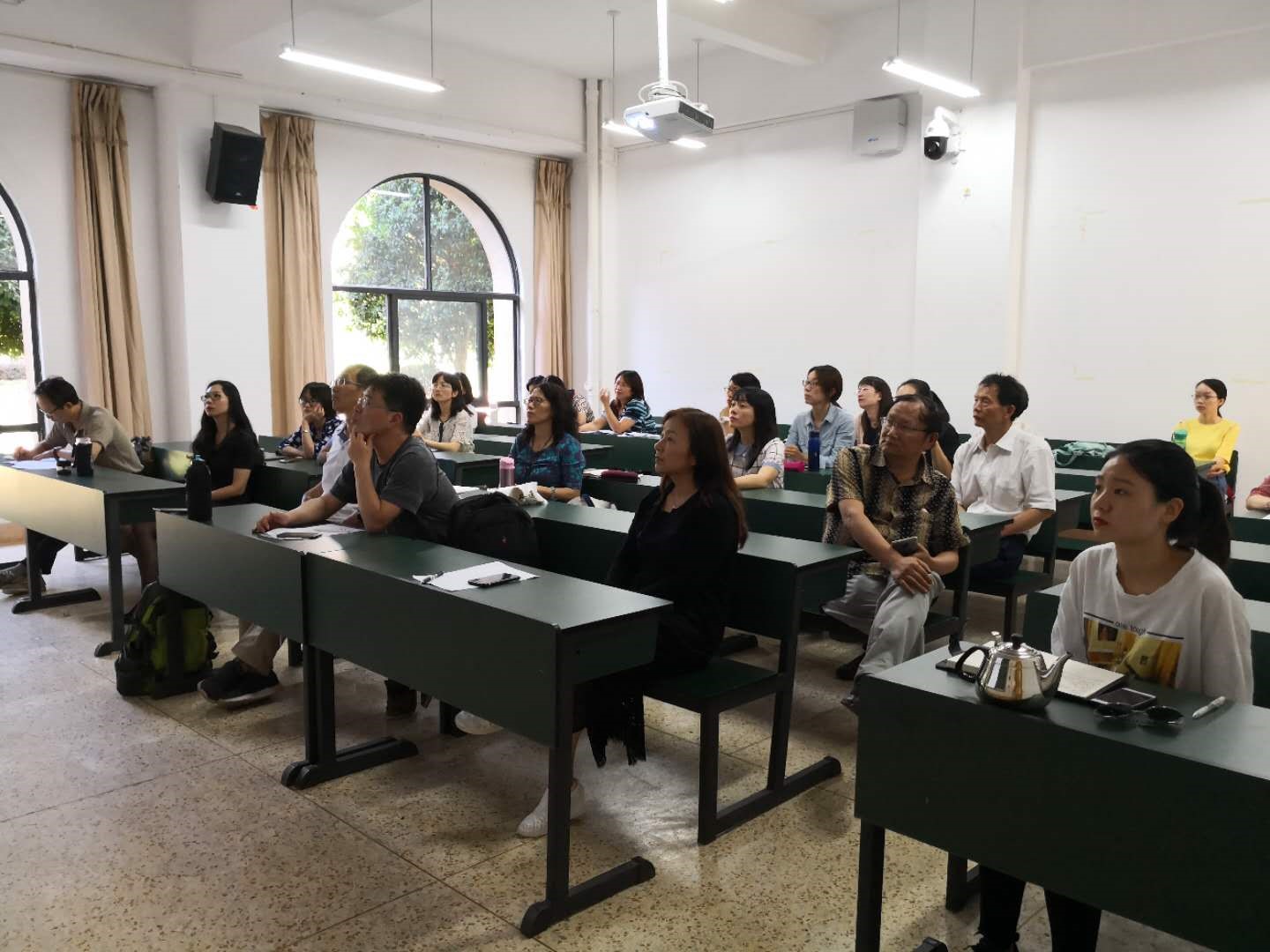 中午稍事休息后,徐教授为ABTY.COM全体教师做了题为《基于外语教学的科研选题与设计》的学术讲座,讲座由ABTY.COM徐志英院长主持。徐教授从自身做教学科研的经验说起,鼓励老师们成为教学科研双丰收的学者型外语教师。接着,徐教授强调,外语教学的各要素,比如师生互动、同伴互动、教师发展等,都可以作为科研的立足点。讲座接近尾声,徐教授又告诫各位同行,教学科研上的成功不是一蹴而就,而是要经历热心(Passion)—耐心(Patience)—恒心(Perseverance)的漫长探索过程。