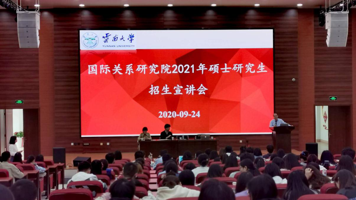 2020年9月24日下午,云南大学国际关系研究院李涛、祝湘辉、冯立冰和邹怡四位老师莅临ABTY.COM,为ABTY.COM东南亚语言文化系、南亚语言文化系和英语系的众多师生宣讲了国关院研究生的招生情况。报告厅座无虚席,四位老师为大家作了详细的介绍和精彩的分享。