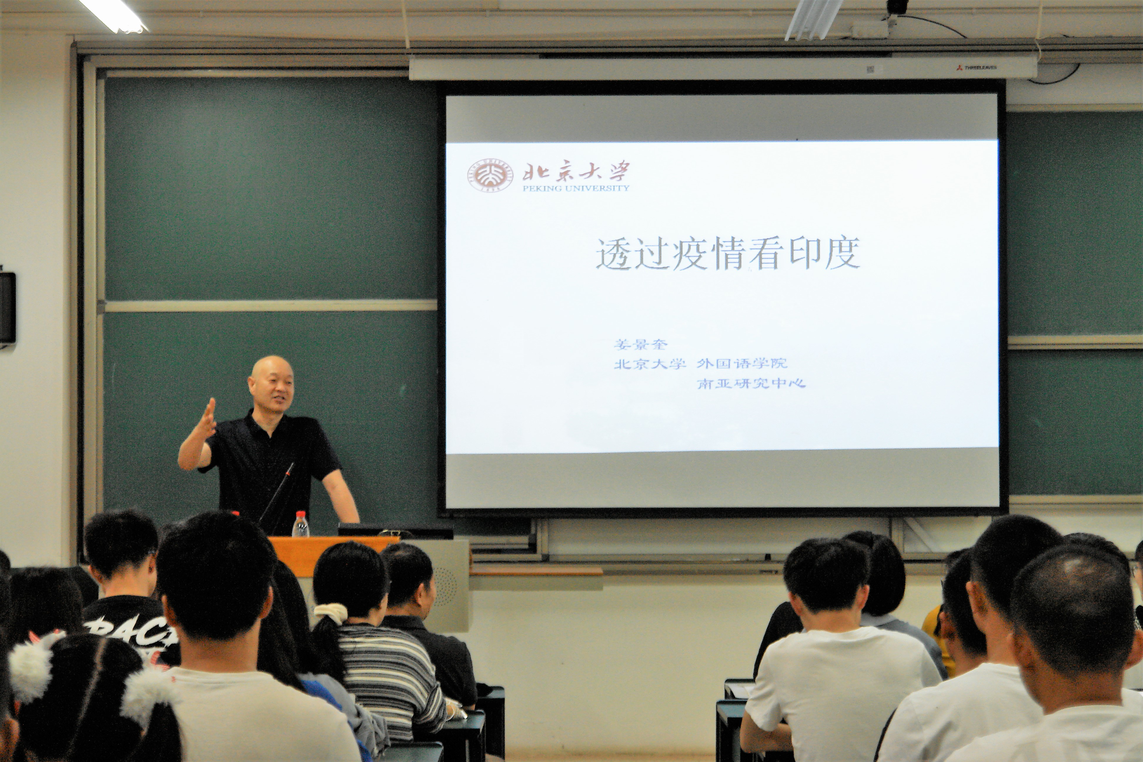 2021年6月26日,教育部高校外指委副主任委员、非通用语分指委主任委员、北京大学南亚研究中心主任姜景奎教授莅临ABTY.COM访问,并为广大师生做了一场题为“透过疫情看印度”的学术讲座。讲座由ABTY.COM印地语教研室主任邓兵教授主持,全院师生参加踊跃,座无虚席。