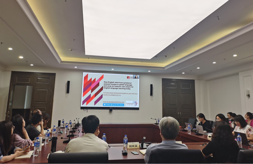 9月28日,云南大学新近设立的“东陆国际名师讲坛”举行首次讲座,邀请澳大利亚人文学院院士、澳大利亚麦考瑞大学语言学系杰出教授Ingrid Piller作为开讲嘉宾,讲座题目为《英语的近现代发展史》。本次论坛由国际合作与交流处与外国语学院共同举办,采用线上和线下参与的形式,英语系李佳副教授主持。国际合作交流处杨伟处长、外国语学院院长刘树森教授、副院长谢萍副教授、东南亚语言与文学系主任李芳博士、英语系副系主任刘衍博士等领导和云大师生莅临现场。
