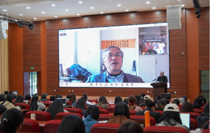 讲座结束后,黄必康教授就讲座内容进行了交流互动,耐心细致地解答了师生提出的问题。黄教授在英译明代伟大的戏剧家汤显祖的名作《牡丹亭》时,采用了莎士比亚的诗体语言进行翻译,为中国经典戏(曲)剧的英译做出了具有创新性探索。许多师生之前对《牡丹亭》的英译有所耳闻,听了黄教授的这次讲座,都受益匪浅,对在英译过程中所采取的策略、实际效应、价值有了更深入的了解,对未来的戏剧(曲)翻译产生了更浓厚的兴趣。