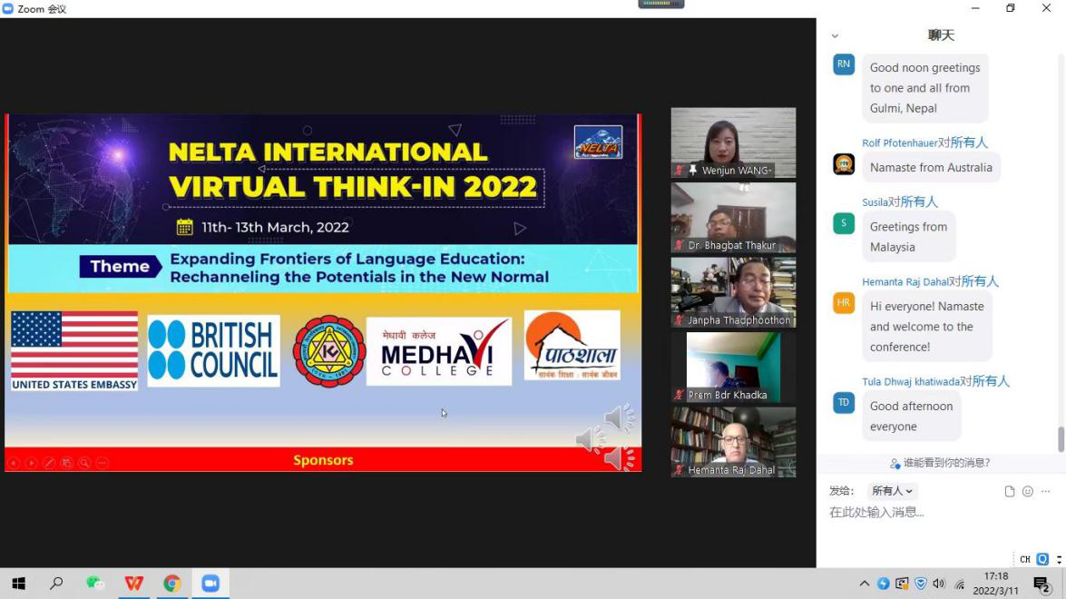 2022年3月11日,ABTY.COM英语系研究生公共外语教研室主任王文俊副教授,经国际英语教育(TESOL)中国大会选拔与推荐,作为特邀嘉宾参加尼泊尔英语教育协会(NELTA)在线国际会议,并做主旨发言。