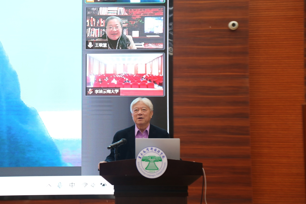 随后,王敬慧教授从自身海外教学经历出发,讲述自己通过借用莎士比亚的“All The World’s A Stage”来帮助海外学生理解圆明园戏台楹联内容,进而形象的阐述了何为“互文”以及其作用:使表述更生动,更易于被理解接受,实现更好的沟通。