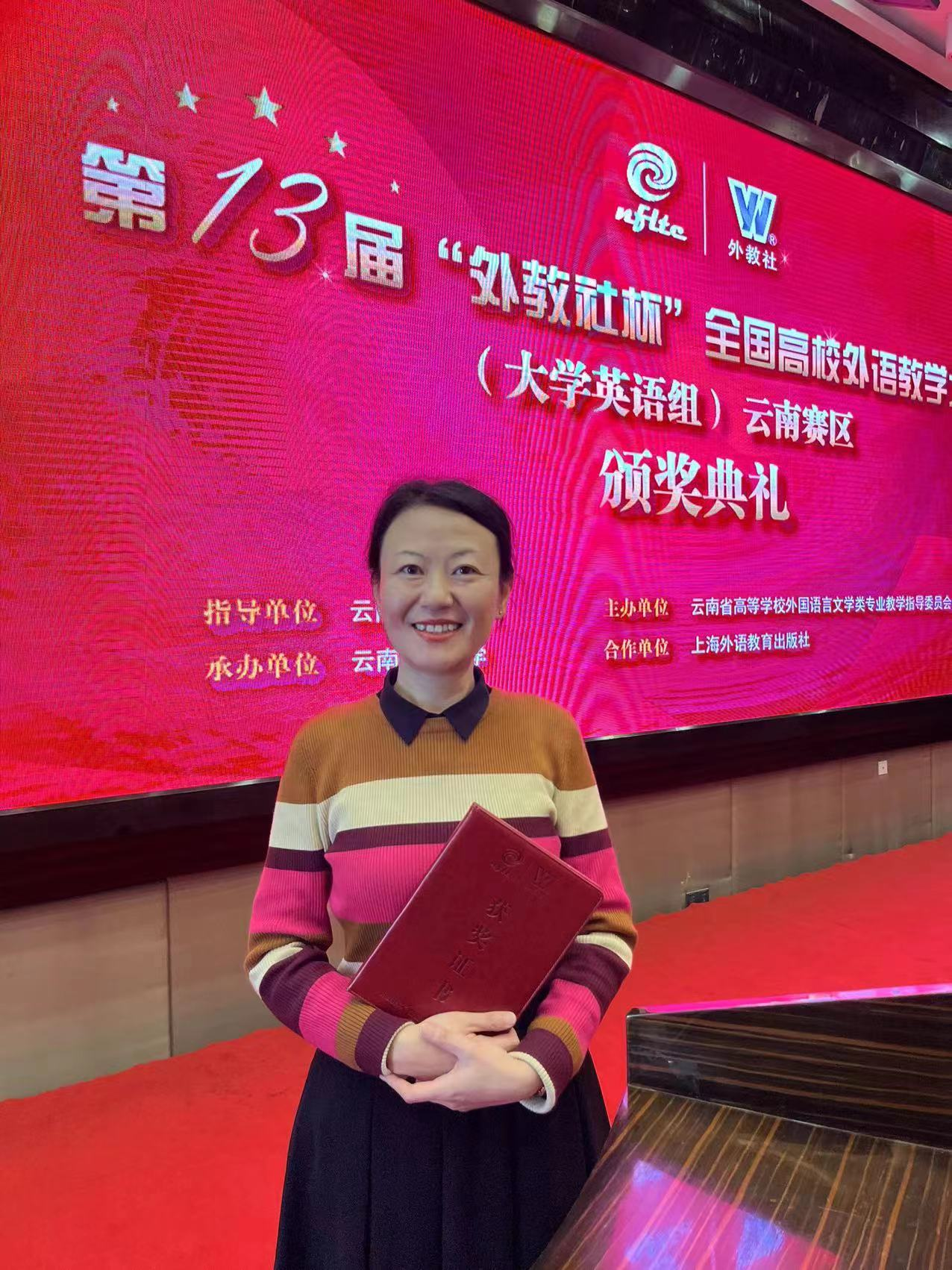 为进一步推动云南省高校教师研究外语教学理论,探索课程思政与外语教育的有机结合,提升大学英语教师的育人素养、学科素养、教学素养、信息素养,推动高等教育高质量发展,由云南省教育厅指导、云南省高校外国语言文学类专业教学指导委员会主办、上海外语教育出版社协办的第十三届“外教社杯”全国高校外语教学大赛(大学英语组)云南赛区比赛暨颁奖典礼于2022年10月28日至30日在昆明成功举办。外国语学院大学外语第二教研部王娟老师喜获云南赛区综合课组一等奖。