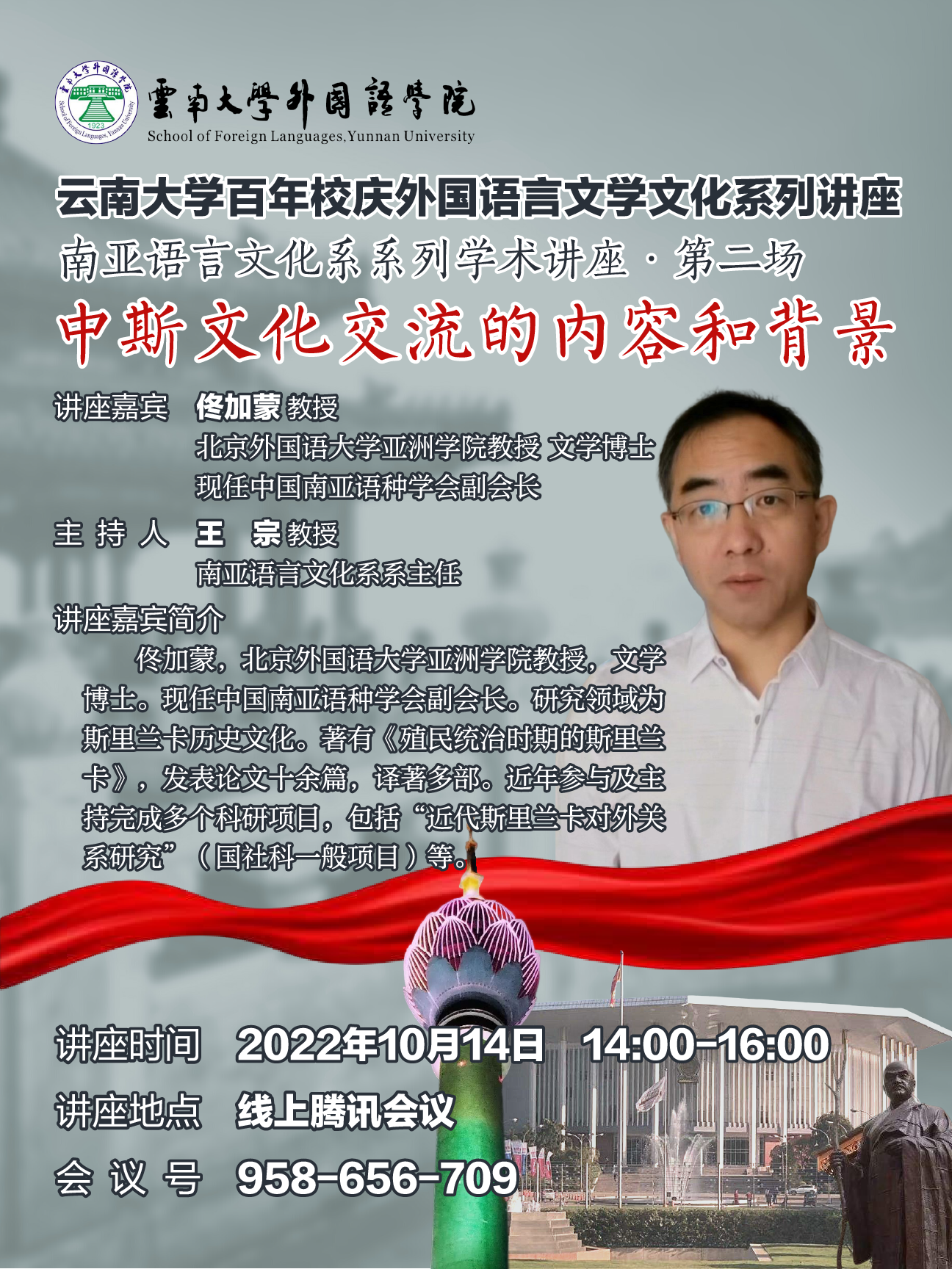 2022年10月14日下午两点,北京外国语大学亚洲学院教授、现任中国南亚语种学会副会长佟加蒙为ABTY.COM师生做了题为“中斯文化交流的内容和背景”的学术讲座。