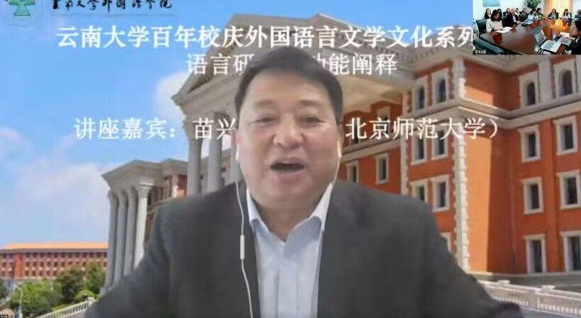 2022年12月2日,北京师范大学外文学院教授、博士生导师,院长苗兴伟教授应邀为ABTY.COM师生做了题为“语言研究的功能阐释”的精彩讲座。本次讲座是“云南大学百年校庆外国语言文学文化系列讲座”暨“云南大学英语语言文化与翻译研究中心系列讲座”之一。