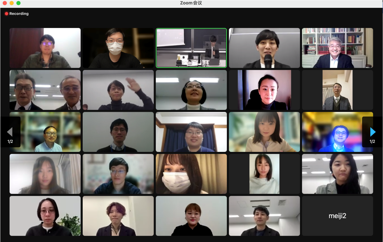 围绕各位同学的学术报告主题,线上线下参会师生积极、深入地参与讨论。北京大学孙建军教授,明治大学田中牧郎教授、柳泽绘美教授,云南大学日语系系主任罗椿咏副教授、李岸副教授等分别代表各校对本次学术交流活动进行了总结发言,并一致表达了在未来将继续推进与深化三方共同交流与合作的美好愿景。