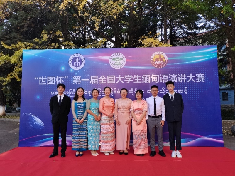 张奕珣(右三)2021年参加第一届全国大学生缅甸语演讲大赛