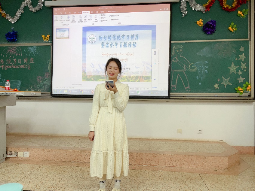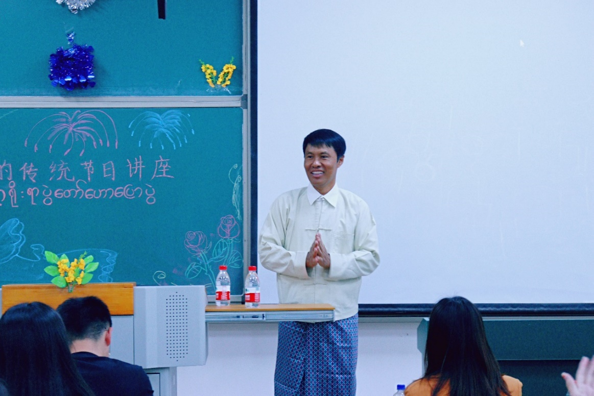 讲座伊始,吴哥雷教授用缅语向大家问好,将师生自然带入到了缅甸语交流的语言环境中,并通过生动有趣的语言开启了缅历新年泼水节讲座之旅。