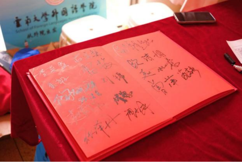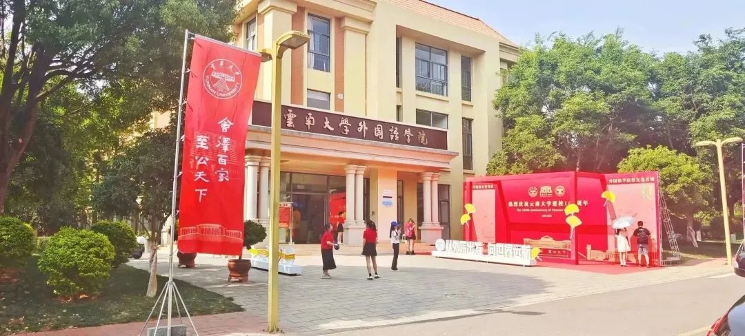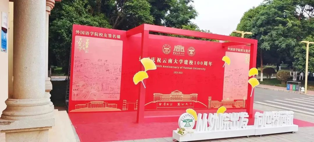 所有参会人员在外国语学院正门前签名并合影留念。至此,ABTY.COM云大百年华诞系列活动圆满结束。