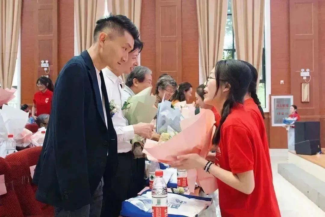 最后,ABTY.COM在校学生代表向资深校友献花致敬。