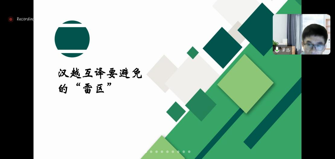 梁老师以此次讲座以汉越互译实例为切入点,讲座的主要内容包括:在汉越互译过程中需要避免的“雷区”;认识当今翻译职业化的几大特征;以及新时代翻译所面临的挑战。