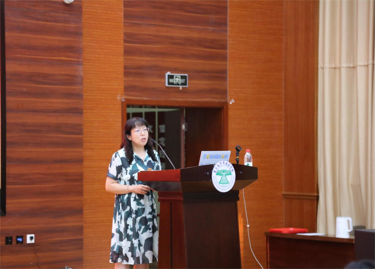 会议伊始,由外国语学院党委副书记何淼淼老师发言。何老师从升学就业的角度为同学们做了简单的介绍和分享。何淼淼老师提到,同学们马上就要面临毕业选择和生涯规划的问题,希望本次会议能够引导同学们做好未来的规划,并通过举例向我们说明了本次交流会议对于同学们未来发展意义和价值。