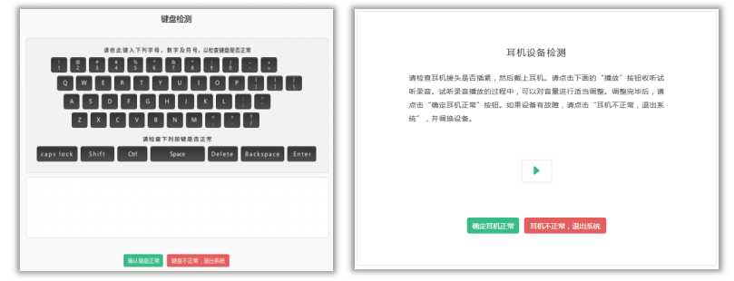 耳机要求:无需准备耳机,检测环节正常检测即可