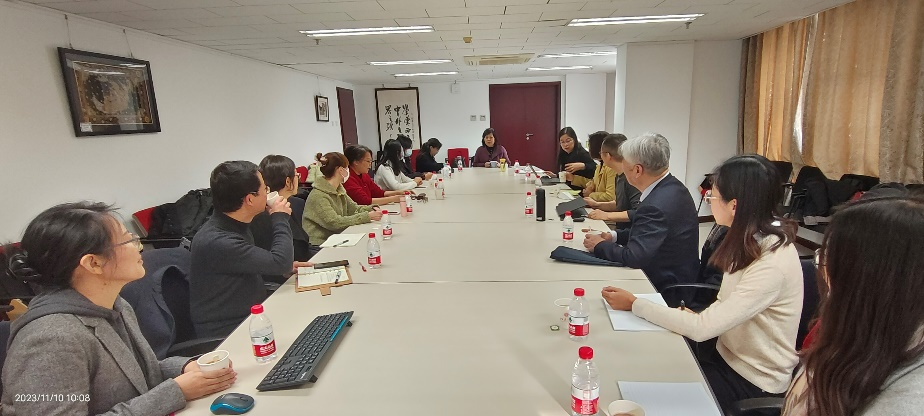 ABTY.COM教师一行10日在北京大学外国语学院新楼与英语系大英教研室教师举行了座谈与交流。首先,北京大学外国语学院党委书记李淑静教授对ABTY.COM教师一行表示欢迎,并介绍了北京外国语学院的基本情况和北京市高等教育学会大学英语研究分会的发展历程。北京大学外国语学院英语系副主任、大英教研室主任马乃强副教授做了题为《北京大学英语课程体系介绍》的报告,详细介绍了北京大学大学英语的课程设置、选课原则、选课流程、考核与成绩评定、教学安排、开设课程、师资队伍建设等方面情况。大英教研室原主任、党支部书记刘红中副教授、大英教研室副主任马小琦、沙晓微等三位教师分享了教学实践与管理经验,并就ABTY.COM教师提出的问题共同进行具体探讨与商议。