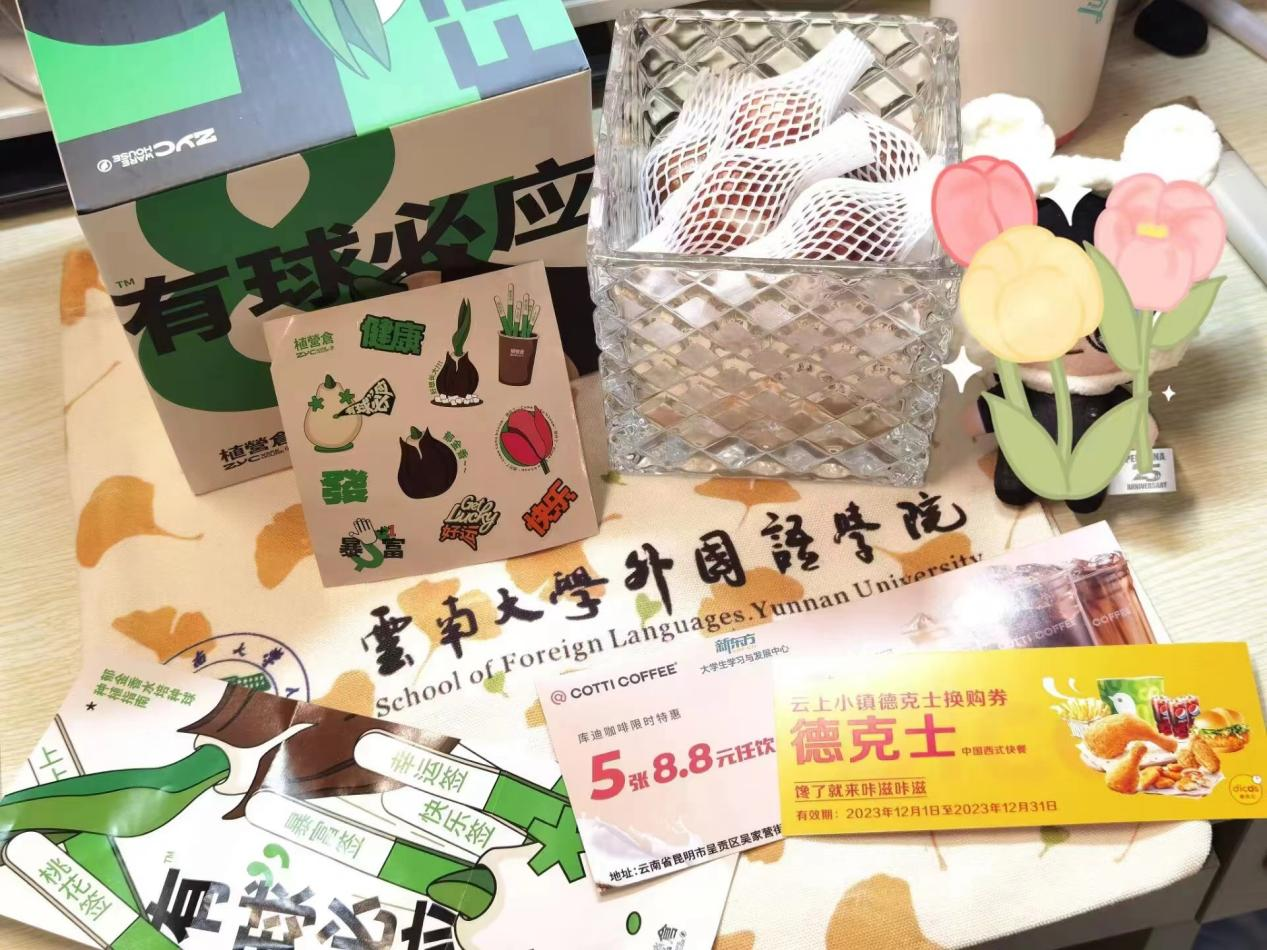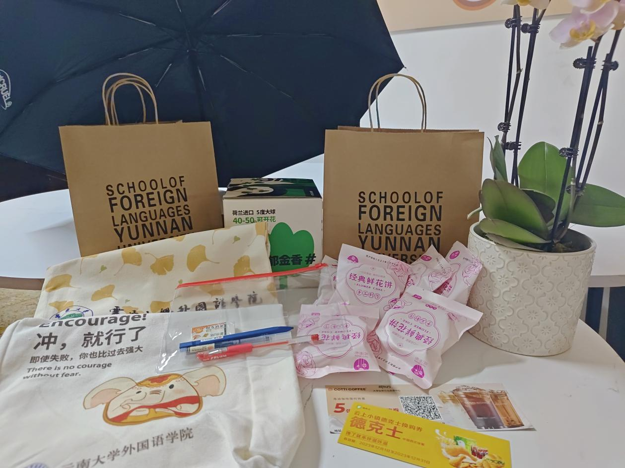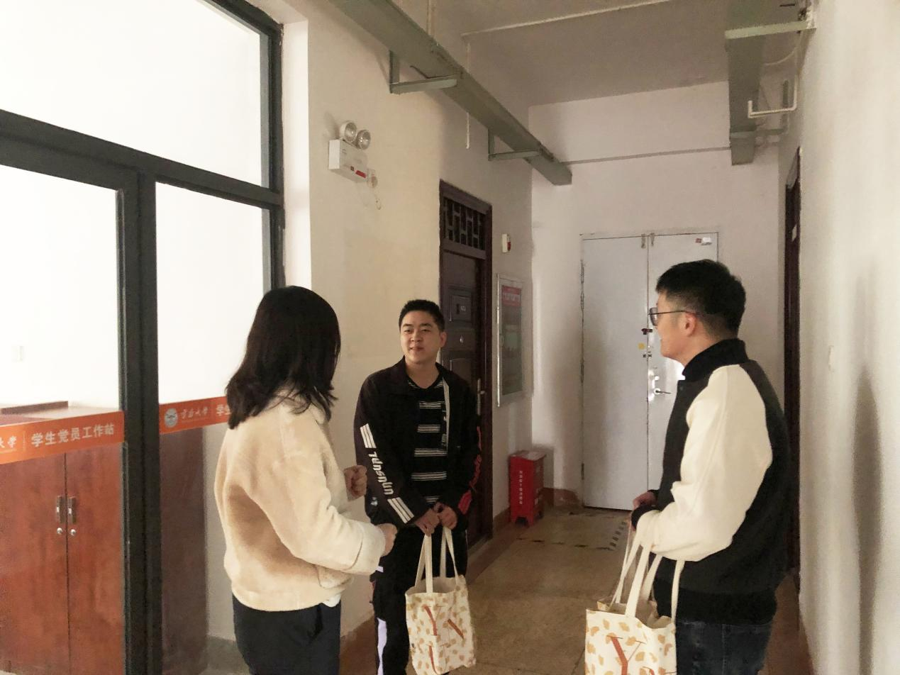 在寒冷的冬日里,何副书记代表学院党政领导班子,带着满满的关爱,深入走访了考研同学的宿舍。详细询问同学们的学习生活情况,鼓励他们要坚定信心,保持积极乐观的态度,克服困难,坚持到底。同时,为同学们送上了精心准备的慰问品,包括“有球必应”郁金香花盒、小潒布袋、文具袋、咖啡券、鲜花饼等,希望这些小小的心意能为同学们的备考之路增添一份温暖。
