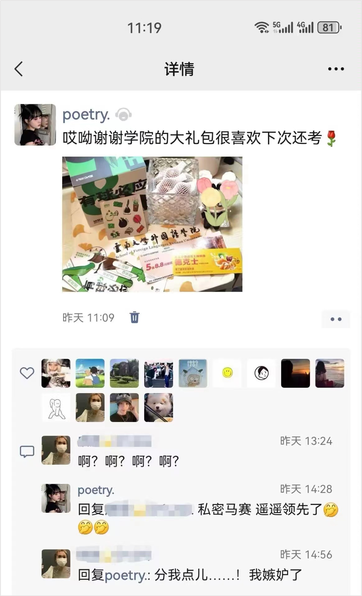 同学们纷纷在朋友圈晒出了收到的慰问品,表达了对学院领导和老师们的感激之情。让我们一起跟随同学们的镜头去饱饱眼福吧!