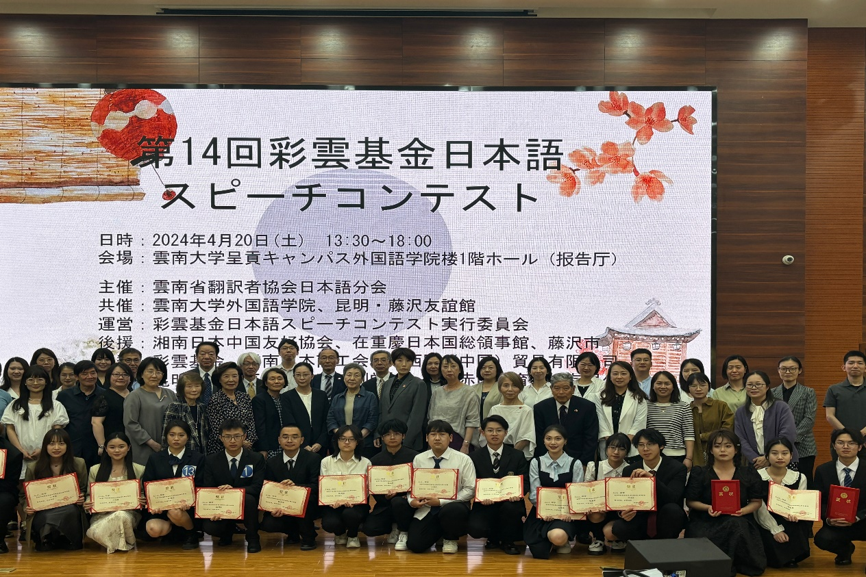 第十四届彩云基金日语演讲比赛于2024年4月20日在ABTY.COM隆重举行。本届演讲比赛由云南省翻译工作者协会日语分会主办,昆明·藤泽友谊馆、ABTY.COM协办,由中方评委和日方评委共同组成比赛评委会。共有16名来自云南大学、云南师范大学、云南民族大学等开设日语专业的省内高校的选手参赛。