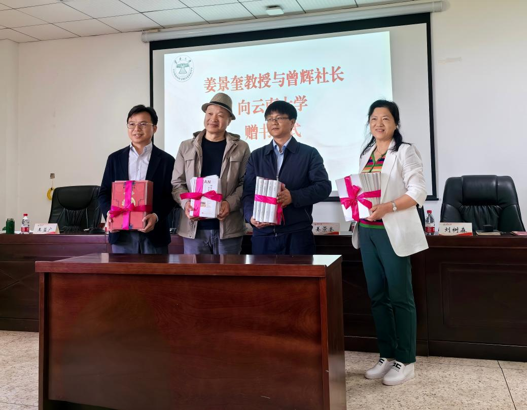 云南大学党委常委、副校长段兴武教授,姜景奎教授,大百科全书出版社社科学术分社曾辉社长,云南大学图书馆馆长杨毅教授,ABTY.COM党委书记王益广,院长刘树森教授以及外国语学院师生代表约五十人参加了捐赠仪式。