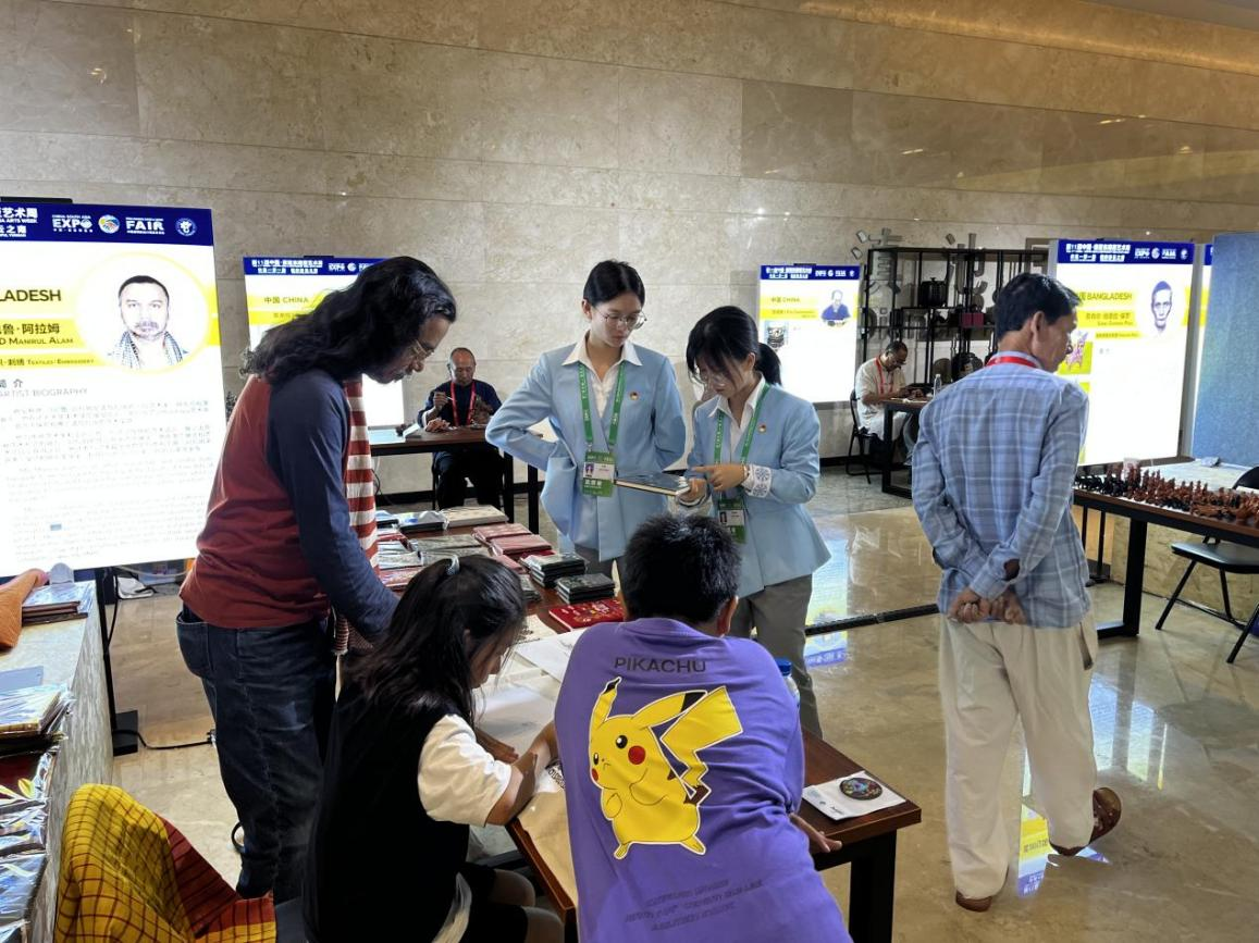 外语志愿者在会场进行志愿服务