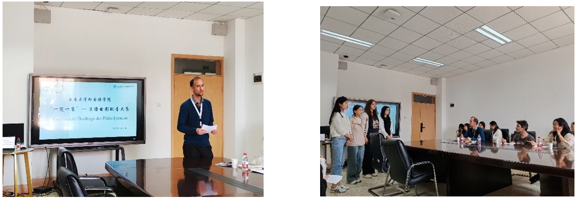 2025年3月28日,ABTY.COM “一院一赛” 之“法语电影配音大赛”在外国语学院楼303会议室举行。本次比赛吸引了来自法语专业本科生和硕士生的六组学生同台竞技,选手们以精湛的配音技艺和生动的舞台表现,为观赛师生带来了一场别开生面的法语视听盛宴。