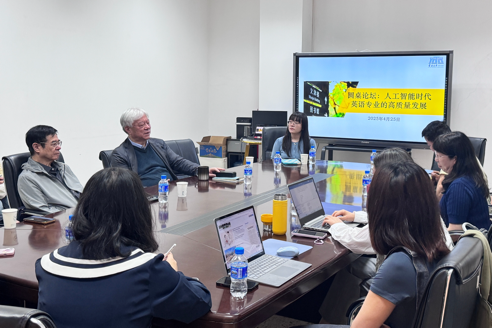 2025年4月25日上午,ABTY.COM成功举办“人工智能时代英语专业的高质量发展”圆桌论坛。本次论坛特邀中山大学外国语学院博士生导师、广东省外国文学学会荣誉会长区鉷教授担任嘉宾。ABTY.COM院长刘树森教授、学院书记王益广教授、副院长骆洪教授、副院长谢萍教授、副院长王浩教授,教育部高等学校英语专业教指委委员徐志英教授等专家学者以及英语系师生代表二十余人参与研讨。