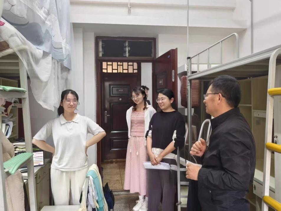 6月16日至30日,外国语学院党委书记唐国锋、党委副书记何淼淼、副院长谢萍三位学院领导与学工办老师深入学生宿舍,走访慰问处于期末考试周的外院学生,了解学生在学习与生活等方面的情况,助力学生在各自的学业上顺利发展。