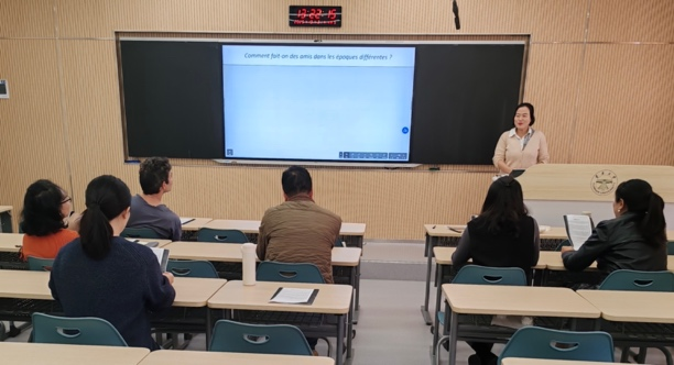 在研讨环节,法语教研室的老师们从个性化方案设计、PPT制作、讲授时长、板书比重及课程思政等方面提出了具体的建议,如进一步关注课堂教学的时政内容,增强时效性;增设“翻转课堂”环节,增加学生互动频次等。最后,教研室主任对本次磨课活动进行了总结,形成了活动纪要,作为后续教学提升的参考。