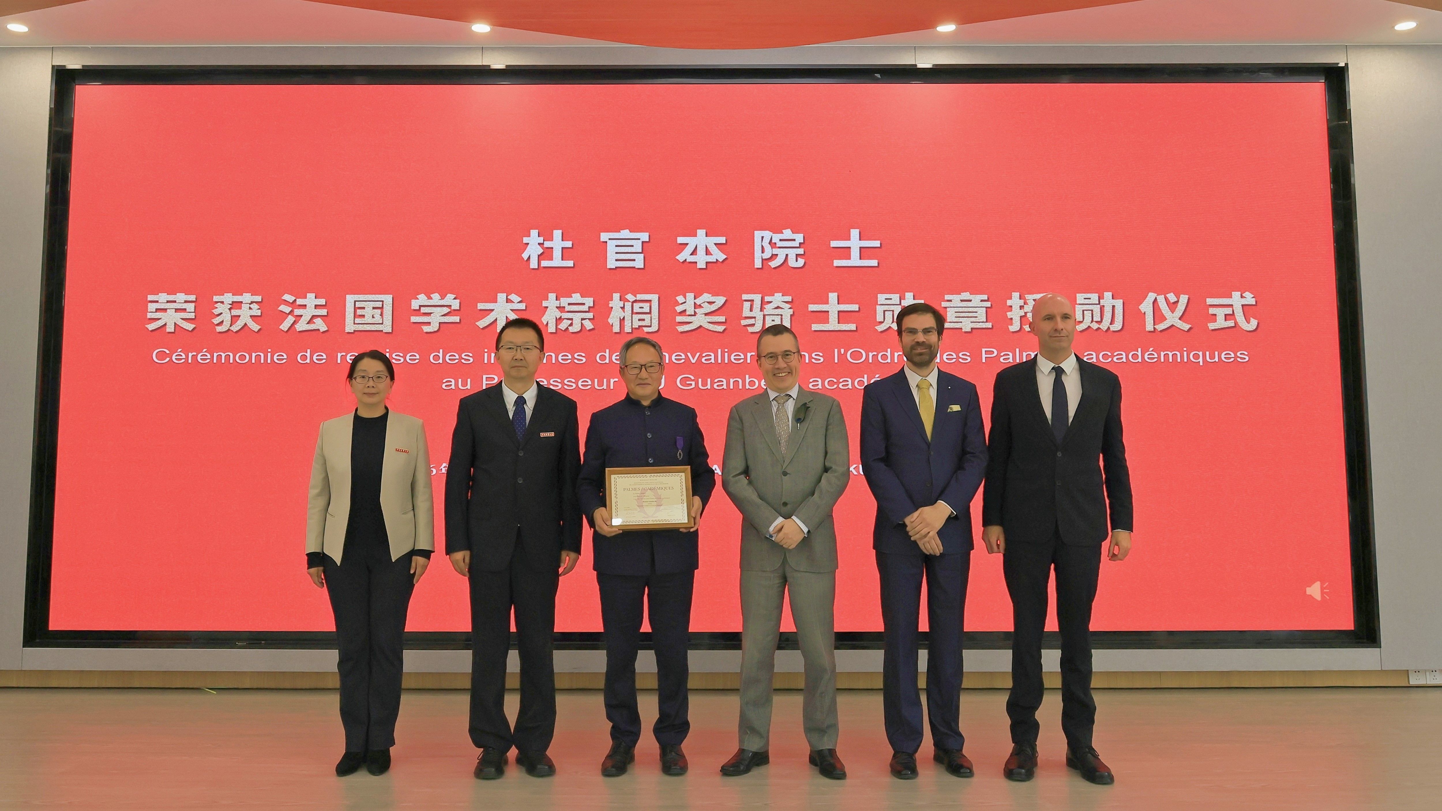 2026年3月16日,ABTY.COM法语系教师解婷、王天骄、舒湛及法语笔译硕士研究生孔煜辉同学应邀赴西南林业大学,参加杜官本院士荣获“法国学术棕榈奖骑士勋章授勋仪式暨法语活动月”活动。活动现场,中法嘉宾齐聚,多语交汇、人文相映,展现出滇法教育交流的深厚情谊。