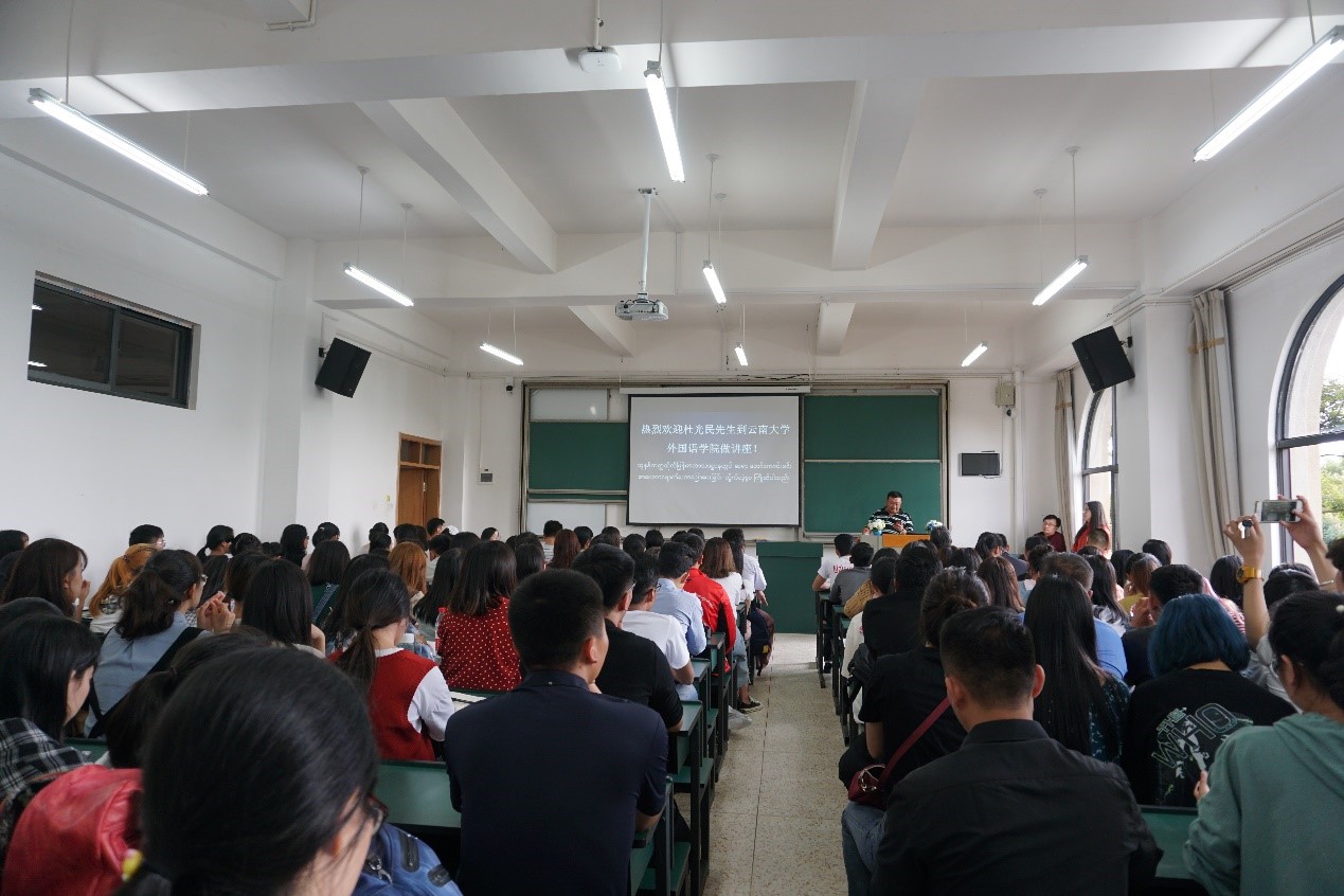 2019918日,缅甸著名翻译家杜光民先生受邀到外国语学院为缅甸语系全体师生带来了一场精彩的中缅文学作品翻译体会与经验交流会。本次讲座由外国语学院骆洪副院长主持,缅甸语系全体师生、缅甸研究院部分老师、缅甸民盟青年骨干交流研修班的学员及缅甸留学生参加了此次交流会。